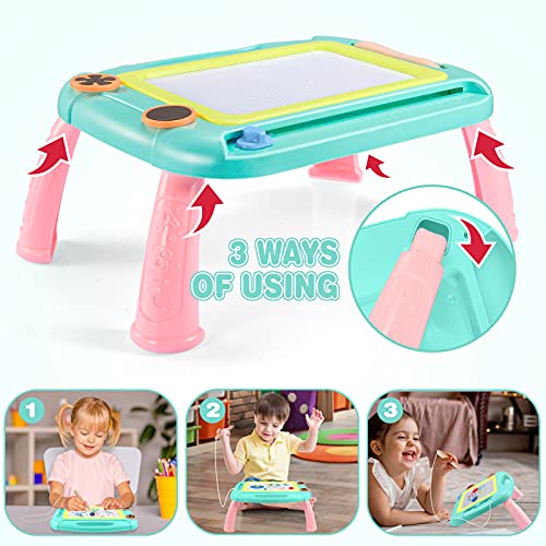 【Lavagna Magnetica per Bambini】- Le 4 gambe del tavolo da disegno possono essere staccate e cambiare formato in 3 modi. Senza i piedini staccabili, i bambini possono disegnare sul letto o sul pavimento. Con le gambe di supporto, i bambini possono sedersi davanti alla lavagna per disegnare e scrivere. I bambini possono disegnare più liberamente e comodamente. La lavagna per scarabocchi è un perfetto giochi bambini 2 3 4 anni. (Nota: non sedersi sulla lavagna per scarabocchi.)