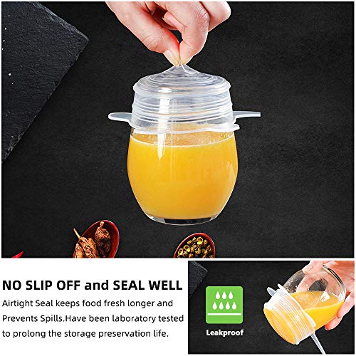 TesRank Silicone Stretch Coperchi, 12 Pezzi Coperchio in Silicone Estensibile, Riutilizzabile e duraturo per Alimenti con 4 Pezzi Alimentari Tenuta Clip