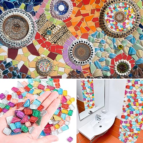 Tessere Mosaico Vetro Colorato, Colore Misto Irregolari Pezzi di Vetro Piastrelle Mosaico per Mosaico Piastrelle Assortite per Decorazioni, Cornici, Vasi, Arte, Casa e DIY