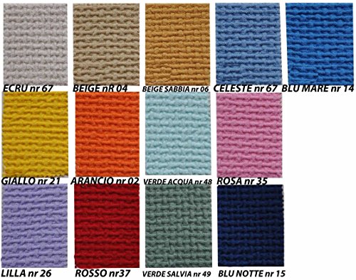Copriletto tessuto a nido d'Ape, in tinta unita con particolare tessitura a piu' rilievi, viene tinto a capo finito per renderlo irrestringibile morbido e resistente, ed e' rifinito con la frangia su 3 latiLo offriamo in diverse misure e tante varianti colore per tutti i gusti.Composizione 100% cotone Made in Italy.