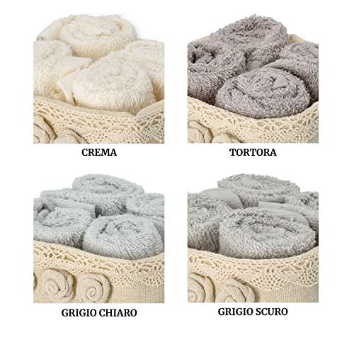 CASA TESSILE Lavette bagno con cestino in tessuto set 4 pz. ROSES Asciugamani Piccoli Per Ospiti. - GRIGIO SCURO