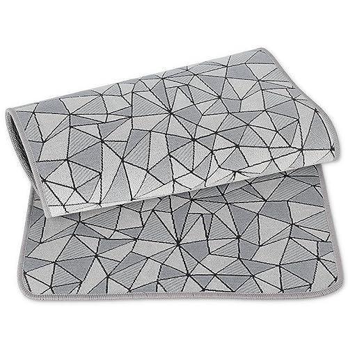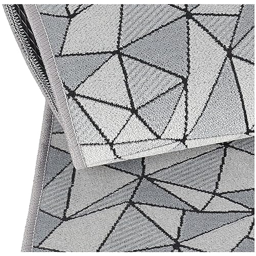 Silver: Tappeto passatoia largo 50 cm. lunghezza a scelta. Disegni geometrici che si ripetono con ordine e regolarita' nelle sfumature del grigio e impreziositi dal filato lurex che dona alla passatoia graziosi riflessi di luce. Un tappeto multiuso utile come tappeto lavello o all'entrata di casa o dove ritieni di aver bisogno di un pratico e fantasioso aiuto. Lo spessore del tappeto e' di soli 5 mm. circa e il materiale con cui e' creato ha un piacevole effetto vellutato al tatto. E' rifinito