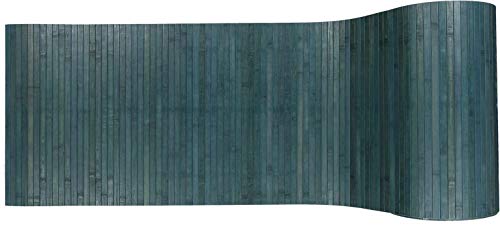CASA TESSILE Tappeto Bamboo Cucina Tinta Unita Antiscivolo, a metraggio Passatoia bambù, Tappeto Bamboo su Misura. - Blu