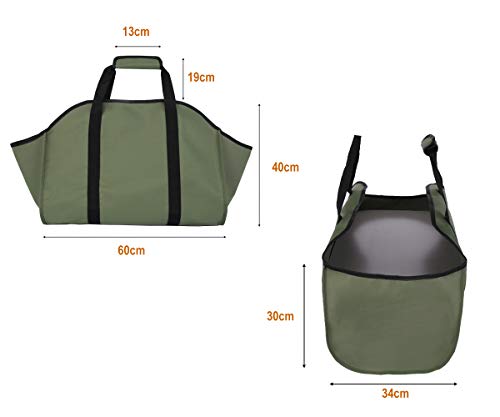 TESSLOVE - Borsa per legna da ardere, in tela, resistente, ideale per caminetti, stufe a legna, legna da ardere, tronchi, campeggio, paesaggistica (L, GREEN)