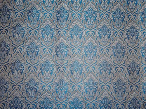 Tessuto broccato blu x color argento, 111,8 cm - hobby, decorazione per la casa, cucito, moda, abito per bambole, arredamento, interni.