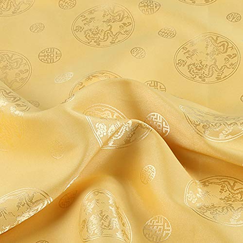 Tessuto Broccato Jacquard Cinese Antico Tessuto di Raso Floreale per Cinese Costume da Tang Han, 1Mx1.2M (Giallo Chiaro, Venduto al Metro)