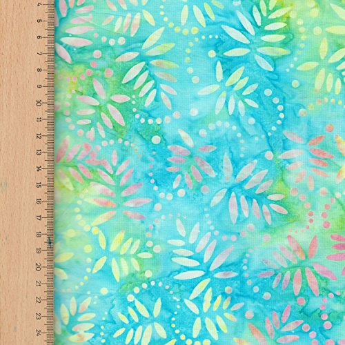 Tessuto, 100% in cotone, con motivi realizzati con tintura a nodo e Batik, stile di Bali, per patchwork e impunture, vendita al quarto di metro, colore: turchese