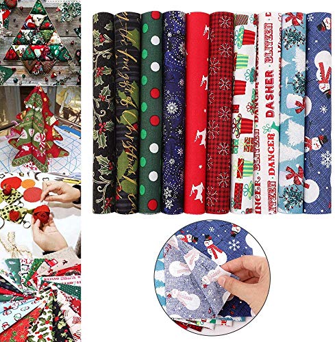 [Misura giusta]: Ogni Tessuto a Tema Natalizio Tessuto Stampato misura 20 * 25cm.In totale 10 pezzi di tessuti pretagliati con motivi natalizi in questo pacchetto, disponibili in 10 modelli diversi;