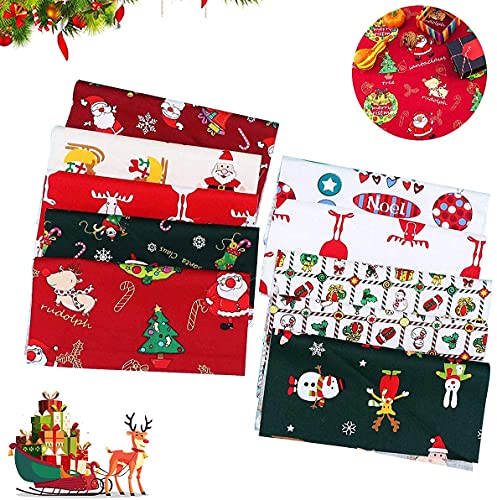 Tessuto di Cotone Natale 10 Pezzi Tessuto a Tema Natalizio Tessuto Stampato,per Cucire Trapunta Albero di Natale Assortito Pretagliato Babbo Natale per l'Artigianato Fai Da Te di Natale (25*25cm)