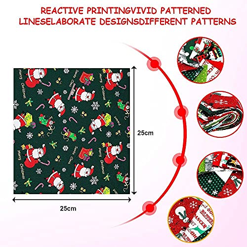 [Misura giusta]: Ogni Tessuto a Tema Natalizio Tessuto Stampato misura 20 * 25cm, 25 * 25cm.In totale 10 pezzi di tessuti pretagliati con motivi natalizi in questo pacchetto, disponibili in 10 modelli diversi;
