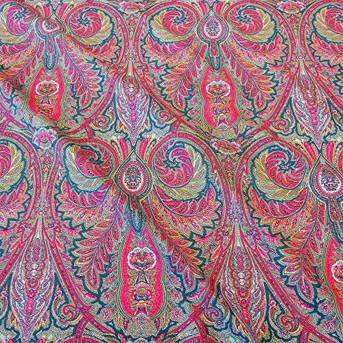 Tessuto di cotone tessuto dal Paisley metro petrol multicolore Valdrome in Francia