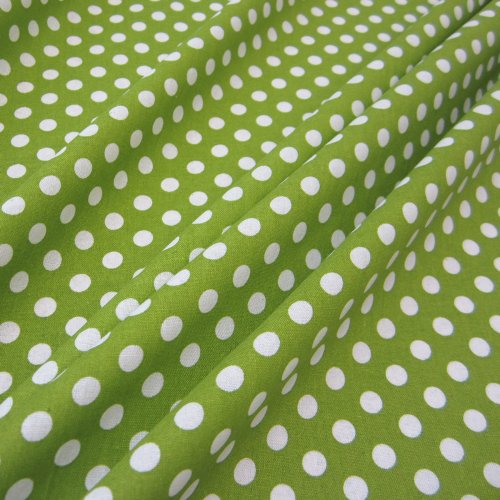 Tessuto di cotone cotone popeline punti a pois pois verde bianco