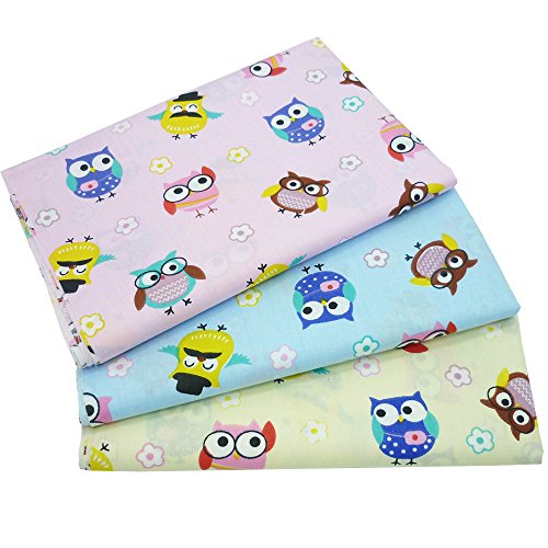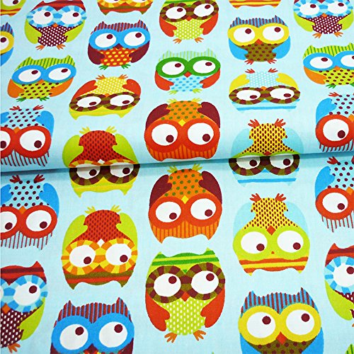 Byy, tessuto in cotone con stampa di gufi, pezze di tessuto per il patchwork, 40 cm x 50 cm, 7 pezzi