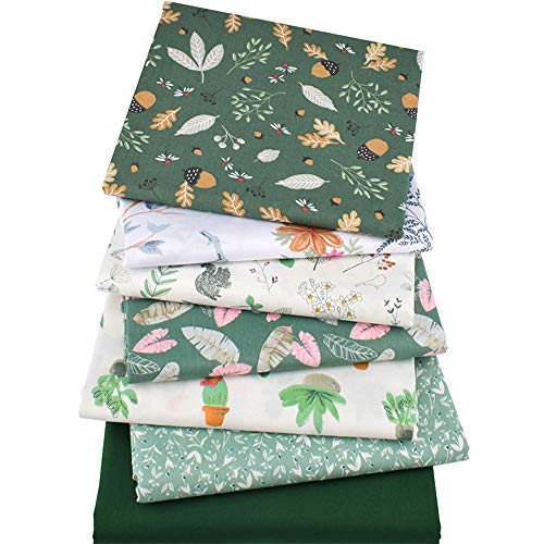 YYSZ Tessuto Cotone Stoffa, Serie verde Tessuto in Cotone, Stoffe per Cucito Creativo per Patchwork, Foderare Cuscini, Vestiti e Cucito (7 Pezzi 56 x 46 cm)