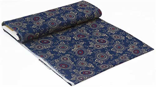 Fiori tondi con accenti rossi su cotone indaco, tessuto in cotone per lenzuola con crisantemi in stile kiku ed accenti rossi, motivo floreale che incorpora anelli rossi, viticci e foglie, appositamente importato dal Giappone da piccoli imprenditori, 100% cotone,, tessuto molto ben fatto, qualità perfetta giapponese