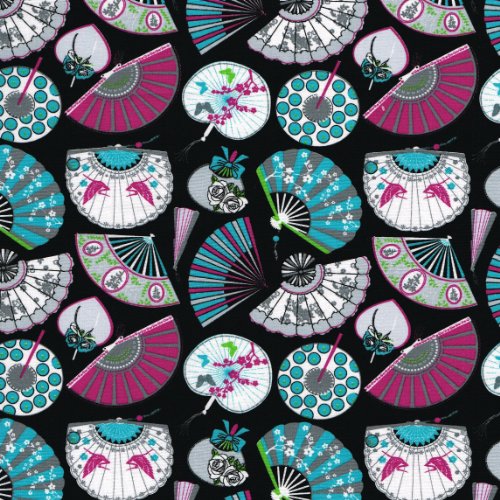 Tessuto grigio, rosa, blu turchese e nero - ‘confezione Ventaglio' (Ventaglio) | 100% puro cotone | altezza: 140 cm (1 metro), a metro / metraggio