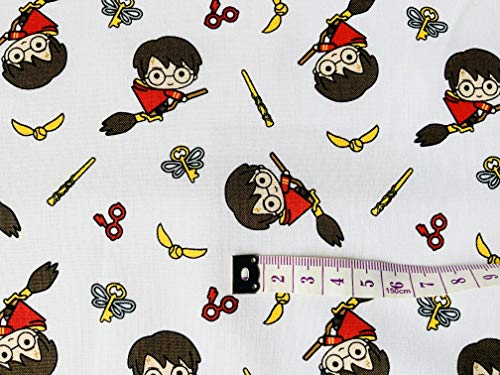 Tessuto Harry Potter - Hogwarts Quidditch Broomstick - Tessuto 100% cotone - Tessuto per bambini - Tessuto per tende (bianco kawaii scopa (pretagliato)