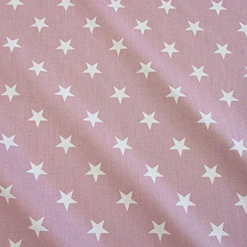 Tessuto al metro in cotone con stelle grandi rosa antico, bianco
