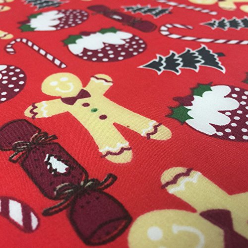 Tessuto in policotone con stampa natalizia, rosso con omini di pasta di zenzero, tessuto artigianale largo 112 cm