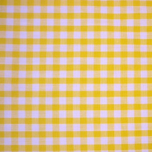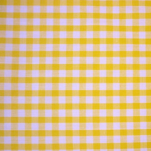 Tessuto a quadretti, in poliestere e cotone, dimensione quadretti: 63 mm, colore: bianco e giallo, vendita al metro