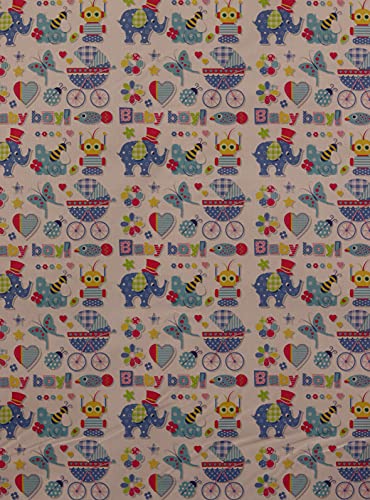 Tessuto Tela in Stampa Digitale, Stoffe al Metro 70% Cotone - 30% Poliestere Altezza 140 Cm (B013-Robo_Culla)