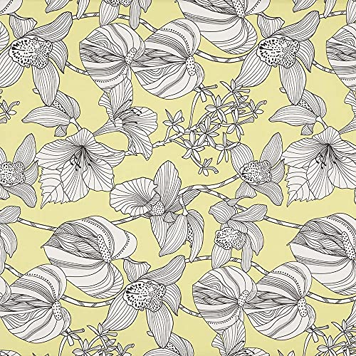 Tessuto in tela stampata digitale - Half Panama 100% cotone biologico, Oeko-Tex Standard 100 - scampolo 100 cm lunghezza x 280 cm larghezza | Fiori profilati Brooklyn - Giallo, bianco, nero ─ 1 metro