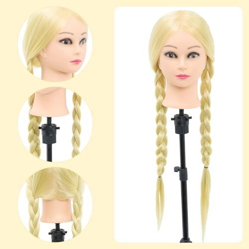 ❦Perfect Set: testina per capelli manichino cosmetologia + strumenti a treccia + morsetto gratuito. Solo un set di esso può soddisfare tutte le tue esigenze di parrucchiere. La testina di allenamento può essere fissata sul tavolo o sulla scrivania con il morsetto, molto comodo da usare.