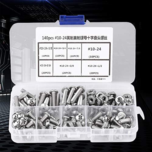 Viti a testa bombata, viti a testa bombata Chacerls 140 pezzi/set # 10-24 Viti a testa bombata in acciaio inossidabile con scatola di plastica