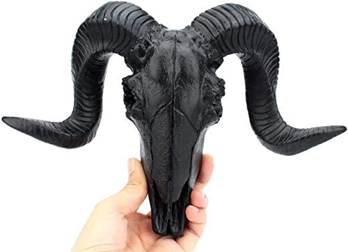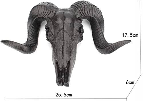 Testa di capra in resina da appendere alla parete, con corna grasse lunghe, teschio di capra, decorazione da parete in 3D con testa di animale e teschio, ornamento per la casa, stile nordico, oggetti