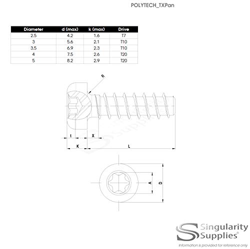 D3 (3 mm x 18 mm) - Viti a testa cilindrica TX per plastica, acciaio inossidabile (A2) (confezione da 20)