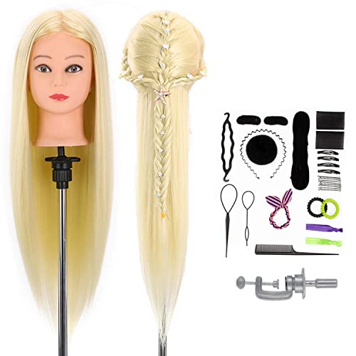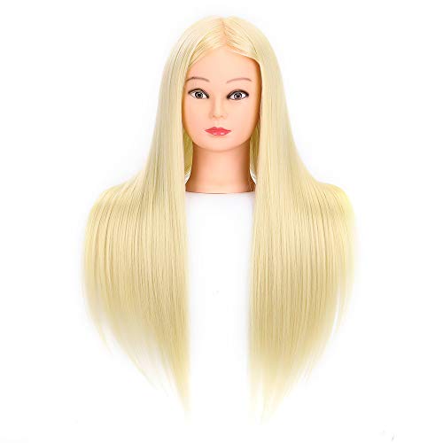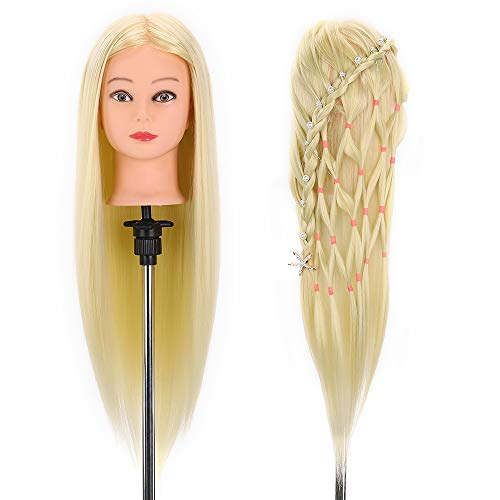Testa di esercitazione per parrucchiere, capelli sintetici al 100%, per parrucchieri, con capelli lunghi, testa di mannequin con supporto + set di acconciature fai da te