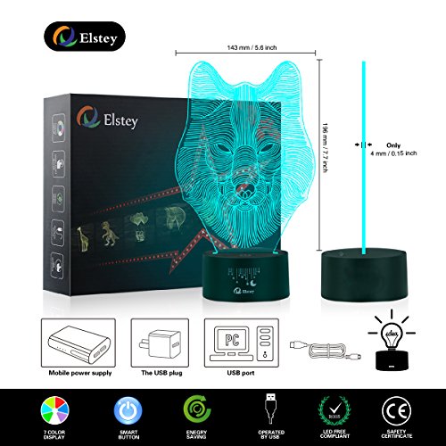 Testa di Lupo 3D illusione lampada LED, luce di notte, haiyu, 7 colori modificabili, con Acryl Flat & ABS Base & Caricatore USB, lampada da scrivania, da tavolo