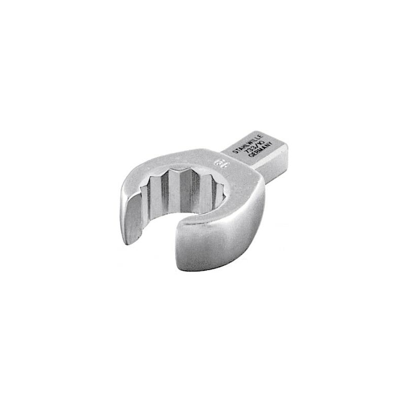 tutti gli utensili con attacco rettangolare con spina elastica di fissaggio. In questo modo si garantisce la presa sicura e stabile delle teste a innesto per chiavi dinamometriche. Materiale: Acciaio al cromo, rivestimento NiCr resistente al distacco. Dati d'impiego: Legenda per disegno e formula: Dati tecnici Materiale sostituibile Testa a innesto Materiale Acciaio al cromo Funzione cricchetto no Superficie cromata (resistente al distacco) Tipo di prodotto Testa a innesto, tipo a chiave poligonale chiusa Serie 733/10 Apertura, mm 12 Larghezza b, mm 24,5 Altezza h, mm 12 Attacco, mm 9×12 Interasse S, mm 17,5