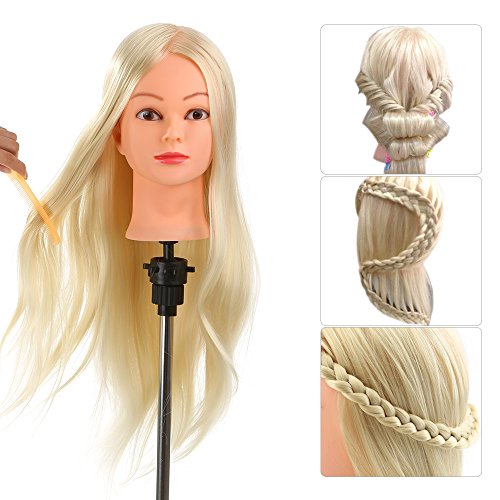 Testa di manichino con capelli lunghi, 66 cm, 30% capelli umani, colore: biondo chiaro, con supporto, per apprendimento esercitazione di parrucchieri