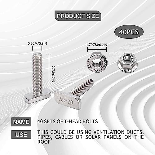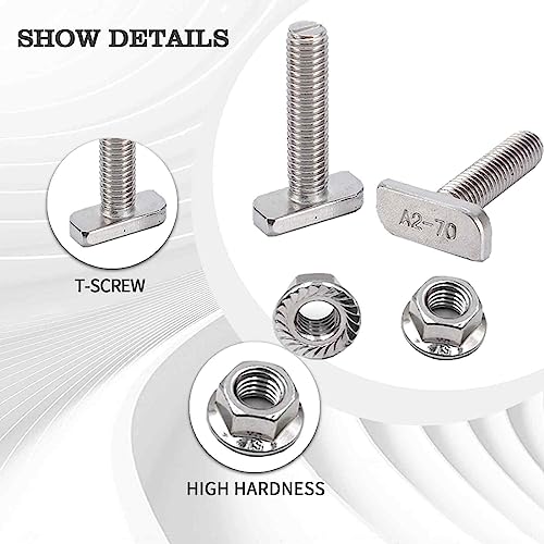 Viti a Testa Martello t Bolt Vite Bullone Con Dadi a Flangia m8 20pezzi Viti Per Guida Di Ancoraggio Per Serra Fotovoltaica Solare Guida Di Montaggio In Acciaio Inox