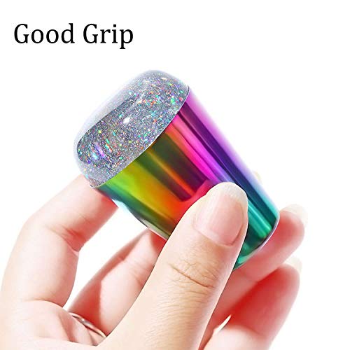 Testa olografica di Ebanku Nail Stamper, manico arcobaleno brillante Stamper trasparente con raschietto per nail art Stamping Template Transfer