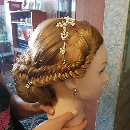 Testa per parrucchiere, manichino da allenamento da parrucchiere, manichino con capelli sintetici da 70 cm, testa di manichino con morsetto da tavolo incluso