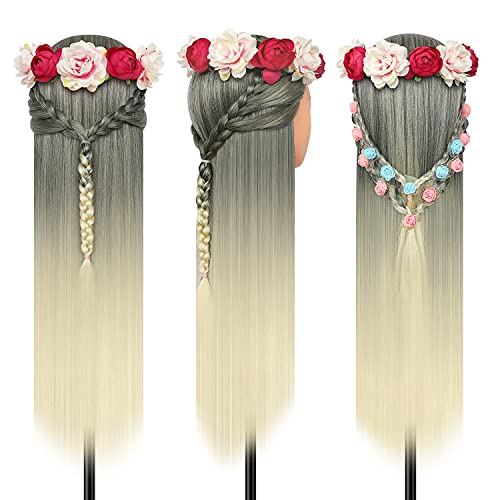 【Alta qualità Testa Per Parrucchiere】: 100% capelli in fibra sintetica ad alta temperatura, capelli extra lunghi, facili da pettinare, nessun groviglio. Se vuoi lisciare o arricciare i tuoi capelli, ti raccomandiamo di non mantenere la temperatura sopra i 120 gradi e di non superare i 15 secondi alla volta.