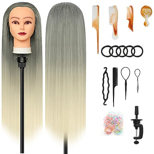 Testa Per Parrucchiere, 28" Testina Parrucchiere Capelli 100% fibre Sintetiche Parrucchiere Testa Testina Parrucchiere Capelli con Morsetto Libero e DIY Accessori Per Capelli (Grigio e oro)