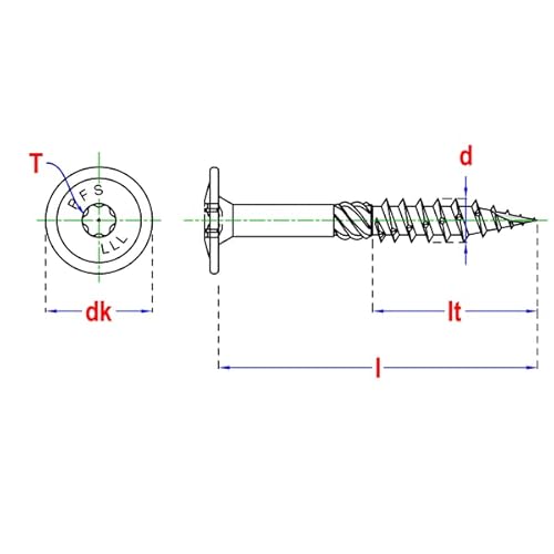 Dimensioni: (vedi immagine) - Diametro: 8 mm (d) - Lunghezza totale: 120 mm (L) - Attacco: Tx T40 (T) - Diametro testa piatta: 22 mm (dk)