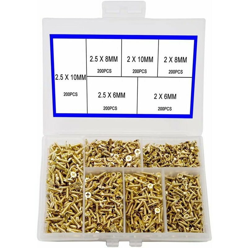 Colore:A Descrizione del prodotto:Colore: viti dorateMateriale: ferroDimensioni della confezione: circa 12 cm di lunghezza, circa 8,5 cm di larghezza, circa 2 cm di altezza. Pacchetto totale: 1200 pezzi Dimensioni: la lunghezza del filo è di circa 6 mm, il diametro del filo è di circa 2 mm, il diametro del dado è di circa 4 mm La lunghezza del filo di 2X8 mm (200 pezzi) è di circa 8 mm, il diametro del filo è di circa 2 mm, il diametro del dado è di circa 4 mm la lunghezza del filo è 2X10mm (200PCS) è di circa 10mm, il diametro del filo è di circa 2mm, il diametro del dado è di circa 4mm2.5 x 6mm (200PCS) la lunghezza del filo è di circa 6mm, il diametro del filo è di circa 2.5mm, il diametro del dado è di circa 4.5 mmLa lunghezza del filo di 2,5 x 8 mm (200 PCS) è di circa 8 mm, il diametro del filo è di circa e è di circa 2,5 mm e il diametro del dado è di circa 4,5 mm La lunghezza della filettatura di 2,5 x 10 mm (200 pezzi) è di circa 10 mm, il diametro della filettatura è di