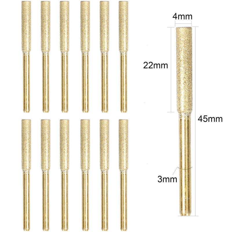 Questa punta per sega elettrica è realizzata in materiale smeriglio rivestito in titanio, resistente all'usura e non rimuove la sabbia, può fornire lunghi tempi di servizio. Resistenza alle alte temperature, resistenza alla corrosione e non è facile arrugginire e resistere all'ossidazione in ambienti umidi. Facile da installare sulla maggior parte delle smerigliatrici elettriche per affilare la catena della sega, con un buon effetto di dissipazione del calore e aiuta a migliorare l'efficienza lavorativa. 12 set disponibili per soddisfare le diverse esigenze di utilizzo, puoi scegliere in base alle tue esigenze. Caratteristiche: Realizzato in materiale smeriglio rivestito in titanio di qualità, utilizza un processo di placcatura in titanio, resistente all'usura e non rimuove la sabbia, può fornire lunghi tempi di servizio. Resistenza alle alte temperature, resistenza alla corrosione e non è facile arrugginire e resistere all'ossidazione in ambienti umidi. Facile da installare sulla