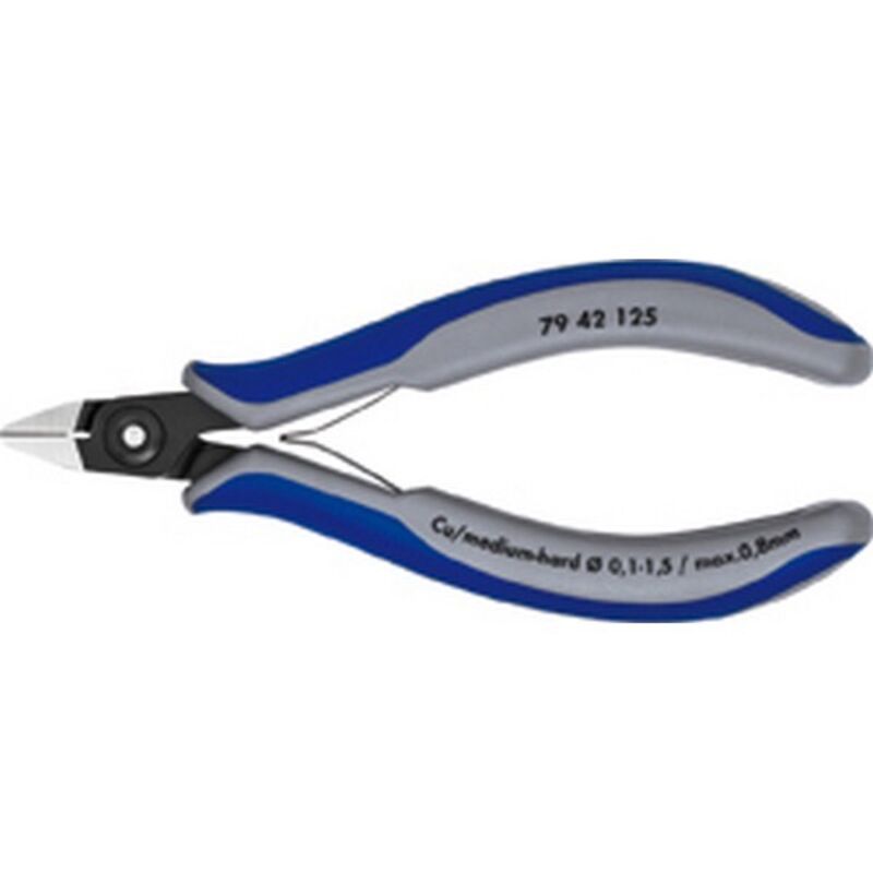 Pinze di precisione per il miglior lavoro di taglio. z. B. in elettronica e meccanica fine. Molto precisamente macinati. Taglio acuto con sfaccettature molto piccole per tagli esatti sui componenti di elettronica sensibili, anche senza sfaccettature per il taglio a filo. Tagliare inoltre induttivamente indurito. Tagliare la durezza circa 64 HRC. Circa il 20 % in meno di peso rispetto alle pinze elettroniche convenzionali. Articolazione avvitata con superfici articolari particolarmente accuratamente fabbricate per quelle pari. Movimento a bassa frizione nell'intera area di apertura. Leggera doppia primavera per un'apertura delicata e persino. Copertine per maniglia multi-componente ergonomicamente ottimizzate. Acciaio con cuscinetto a sfera vanadina cromata. forgiato. Diversi modelli induriti al petrolio: Spitzer Head.