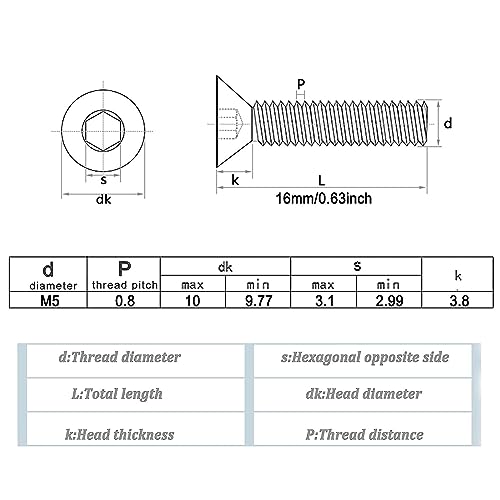 Viti a testa svasata con esagono incassato M5: design con cappuccio a esagono incassato, facile da guidare e non facile da far scorrere, e ha un bordo sottile per evitare spigoli vivi sulla superficie, riducendo il rischio di lesioni.