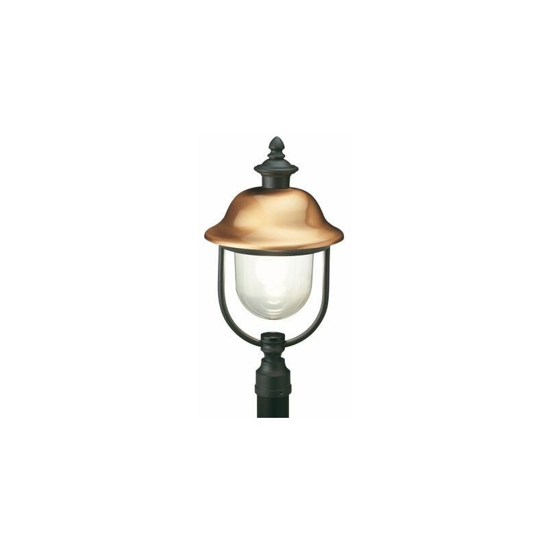 Testa-palo con struttura in pressofusione di alluminio. Copertura superiore in rame. Diffusore in termoplastico trasparente. Manicotto diametro: 60mm. Altezza max lampada: 150mm. Alimentazione 230 V ~ 50 Hz. Classe di protezione: IP43 Potenza massima lampade: 100W