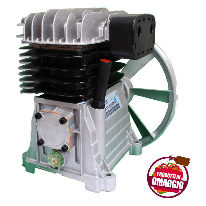 GRUPPO POMPANTE 284 L/MIN Gruppo compressore con trasmissione a cinghia modello monostadio bicilindrico completo di puleggia. La testata viene realizzata interamente in Italia dall azienda Speroni di Reggio Emilia può essere alimentata da un motore di potenza minima da 2 hp. Caratteristiche: Testa in alluminio pressofuso con ampie alettature per un migliore raffredamento Carter olio sovradimensionato per una migliore lubrificazione Piastre-valvole speciali con elevatissima resistenza all usura Omaggio 1 litro olio motore 15w40 Garantiamo la piena disponibilità dei ricambi.
