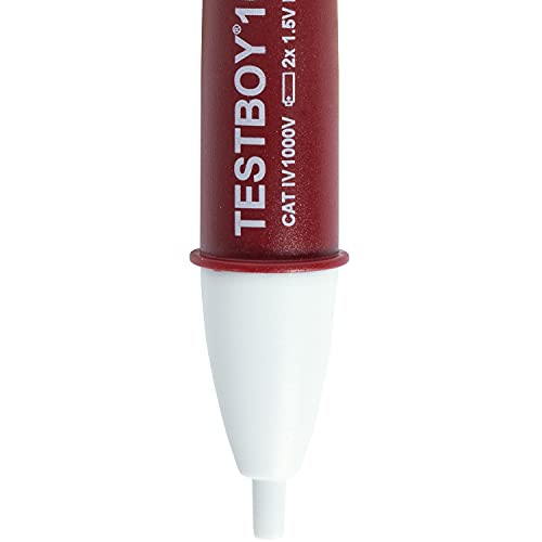 Testboy 105 Rilevatore di tensione senza contatto da 12 V AC con indicatore ottico, acustico e vibrazione (rilevatore di tensione, torcia a led integrata, CAT IV 1000 V), rosso