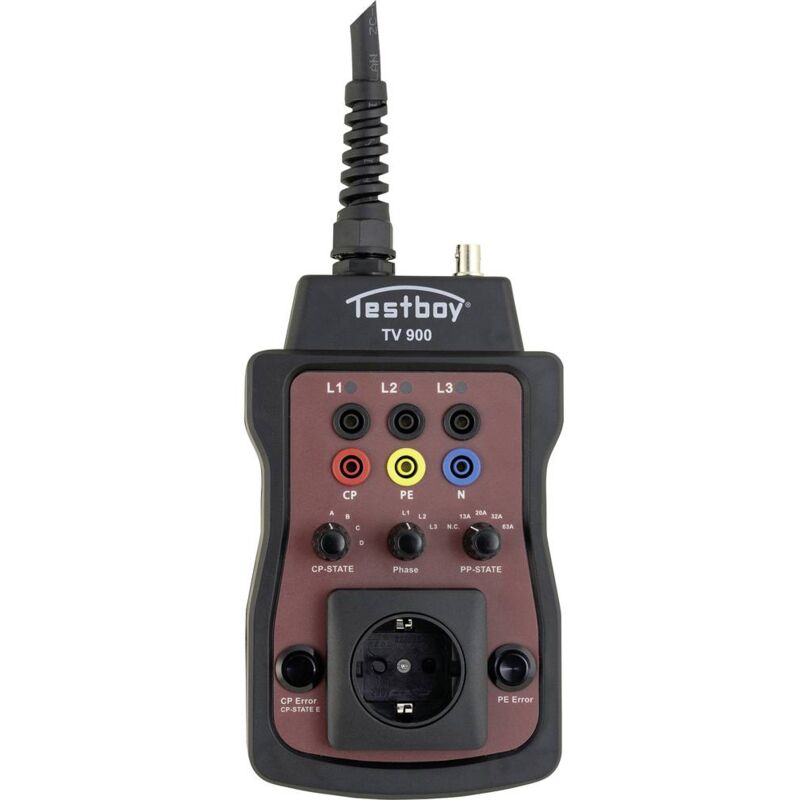 Dettagli tecnici Adatto per marchio (accessori per strumenti di misura) Testboy Dimensione del prodotto, larghezza 120 mm Dimensione del prodotto, lunghezza 215 mm Dimensioni prodotto Altezza 60 mm Peso 1050 g Simulazione della comunicazione CP (CP-State A, B, C, D) Simulazione della comunicazione PP (simulazione del cavo di ricarica collegato 13A, 20A, 32A, 63A) Display a LED delle fasi collegate Simulazione errori (CP-State E e PE-Error) Fasi commutabili su una presa Schuko Prese da 4 mm per il collegamento di un tester o multimetro VDE0100 Collegamento BNC per il collegamento di un oscilloscopio per il controllo del segnale CP Adattatore di prova per colonnina di carica Più e più colonne di ricarica per auto elettriche sono posizionate in tutta Europa. Testboy ha sviluppato l'adattatore di misura TV 900 per poter controllare le colonne di carica di tipo 2 standard in Europa. La TV 900 gestisce e simula la comunicazione con la colonna di carica e un veicolo elettrico. Tramite la
