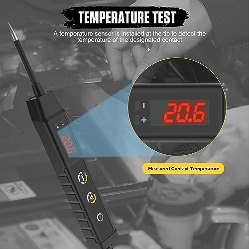 Modalità test multiple: si tratta di uno strumento leggero e compatto per la risoluzione dei problemi elettrici del settore automobilistico. Rispetto a un semplice tester potenza, il nostro tester di circuiti automobilistici dispone di quattro modalità di test (Modalità 1 - Test di tensione), (Modalità 2 - Test di continuità), (Modalità 3 - Test di polarità) e (Modalità 4 - Test di temperatura)Per una migliore ispezione della automobili disconnessioni e controllo dei collegamenti.