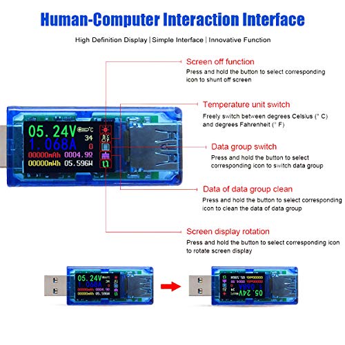 I tester sono ampiamente utilizzati nell'ispezione di qualità dei prodotti per periferiche digitali 3C e sono la prima scelta per i giocatori digitali e gli appassionati di elettronica. Rilevamento immediato dello stato di carica dell'appliance, tensione, corrente, alimentazione e altri indicatori a colpo d'occhio ;